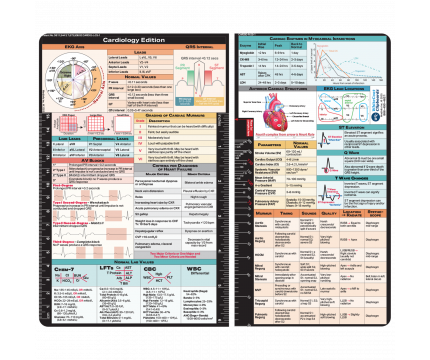 Get our Cardiology Label with the most daily used medical information. Use this reference label to evaluate EKGs, cardiac parameters, murmurs, AV blocks, the criteria for heart failure, cardiac enzymes, anterior cardiac structures and much more. This label can be applied over the top of other labels or used on our ISO full size clipboards.