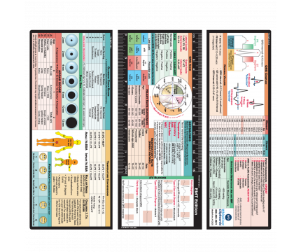 An essential resource for your clipboard, this label can be applied to any solid surface for referencing. This label includes information on taking patient assessments, burns (rule of nines, body surface area), pain scale, sepsis definitions, common labs and conversions with vital signs for infant to adults. Use the medical information on this label to help you diagnose AV blocks, ST elevation, pupil size and much more. Clipboard is NOT included.